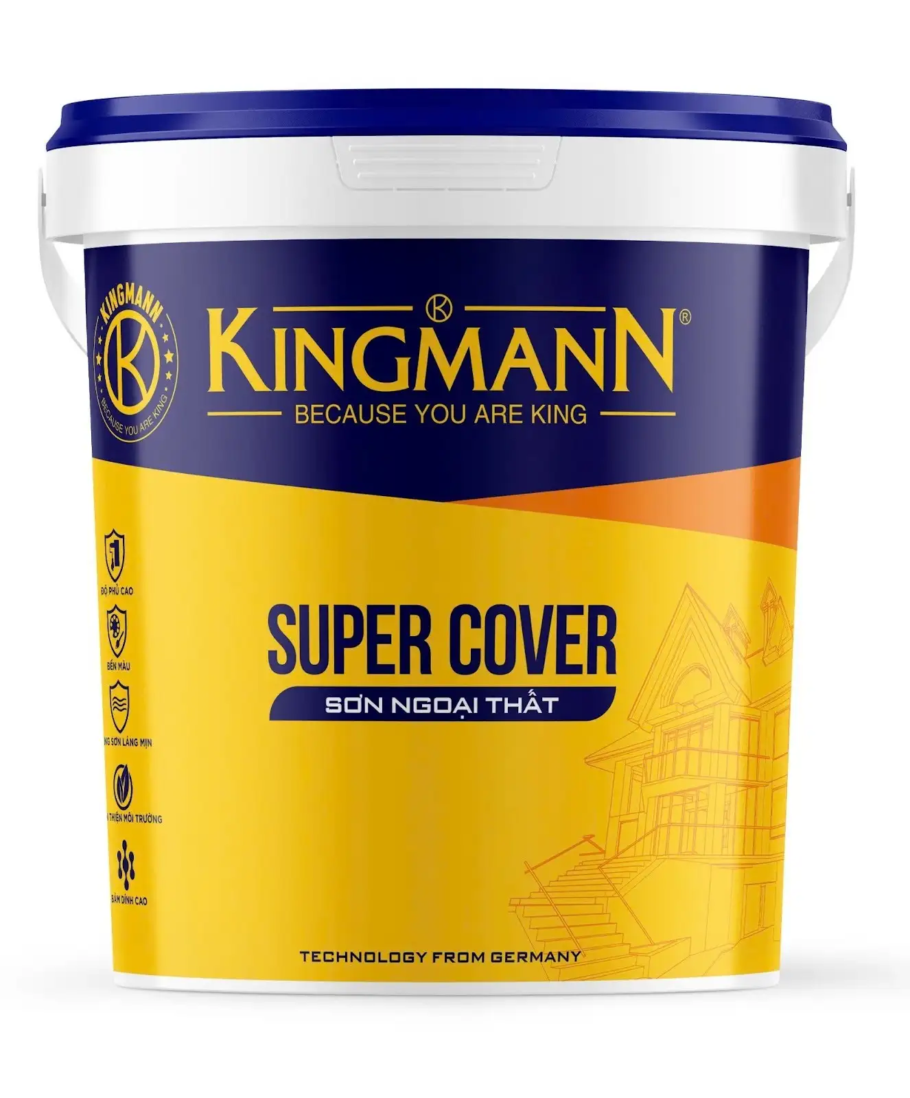 Sơn ngoại thất KINGMANN là sản phẩm sơn nước cao cấp dùng cho bề mặt nội ngoại thất, có khả năng chống chịu thời tiết khắc nghiệt, bám dính tốt và độ bền màu cao. Sản phẩm giúp bảo vệ bề mặt khỏi ảnh hưởng của nắng, mưa, ẩm ướt và các tác nhân môi trường.
