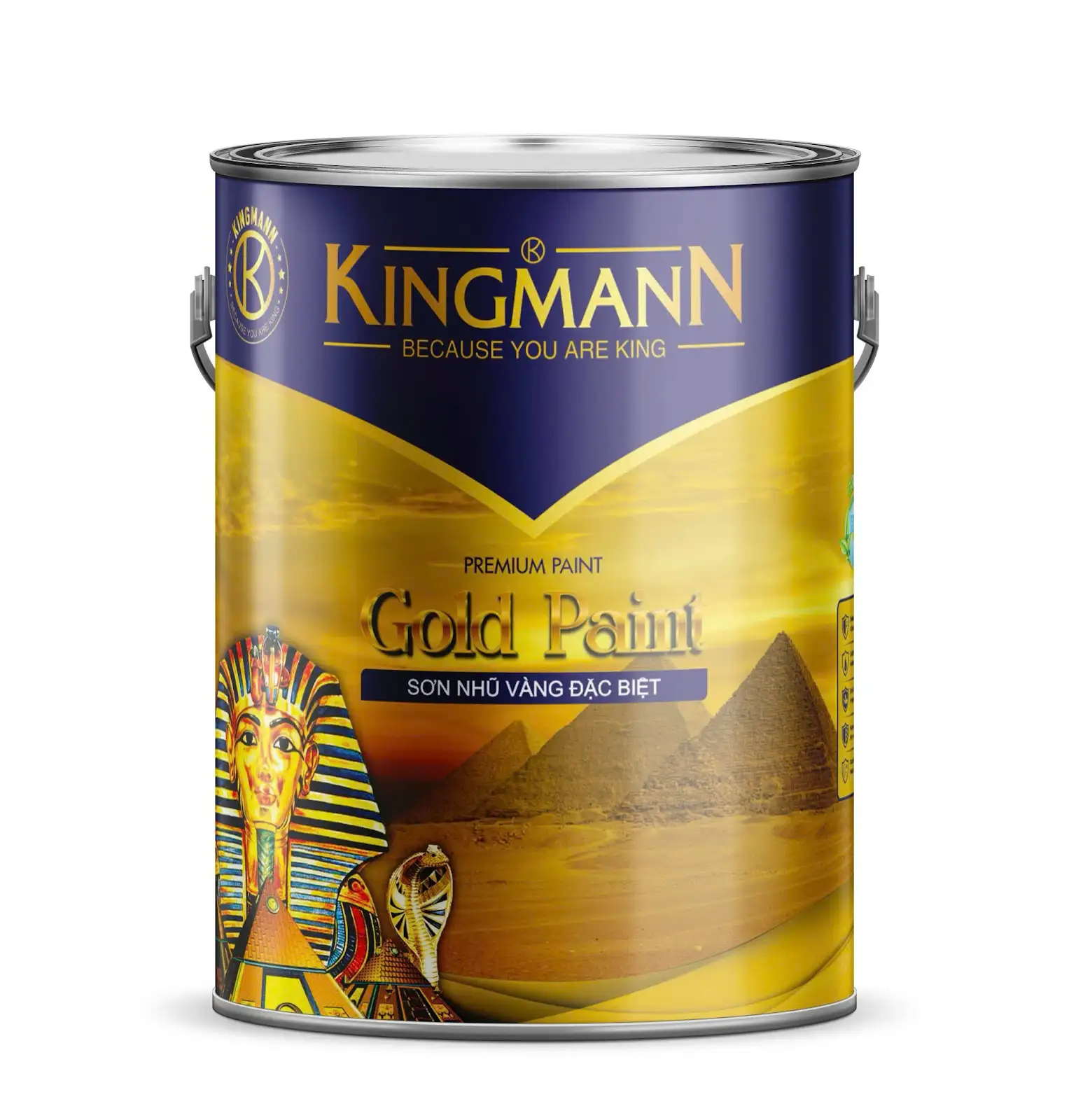 Sơn nhũ vàng KINGMANN tạo hiệu ứng ánh kim vàng bóng đẹp trên bề mặt, mang đến điểm nhấn sang trọng và thẩm mỹ cao. Sản phẩm dễ thi công, độ bám dính tốt và phù hợp cho các bề mặt trang trí nội – ngoại thất.